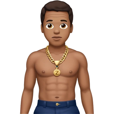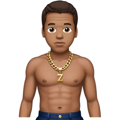 Jay-Z with dark brown hair, shirtless with necklace, metallic navy blue pants emoji