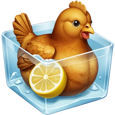 a baked chicken dish with lemon wedges in a large ice cube emoji