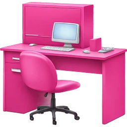 Rose red pink desk with shelves + rose red computer on top of desk. emoji