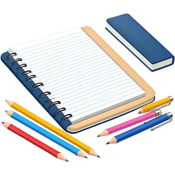 School stationery set with pencils, notebooks, ruler, and eraser emoji