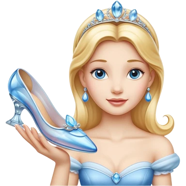 Detailed orginal disney princess character CINDERELLA icon, known for her beauty, kindness and positivity. With her hyperrealistic glass slipper. Still life. 8k hd quailty emoji