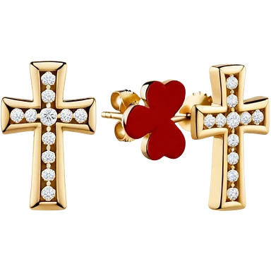 Vintage Van Cleef & Arpels Mini Cross Diamond 18K Yellow Gold Earring Studs emoji
