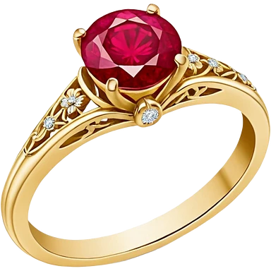 Realistic, detailed, Vintage Tiffany & Co. Round Cut Ruby & Diamond 18k Yellow Gold Half Eternity Ring emoji