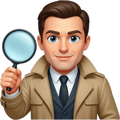 a girl in a detective costume, in a raincoat, with a hat and a magnifying glass in her hands. White skin emoji