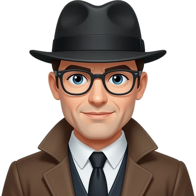 asian girl with large square rectangular black glasses smiling and wearing a detective hat holding a magnifying glass emoji