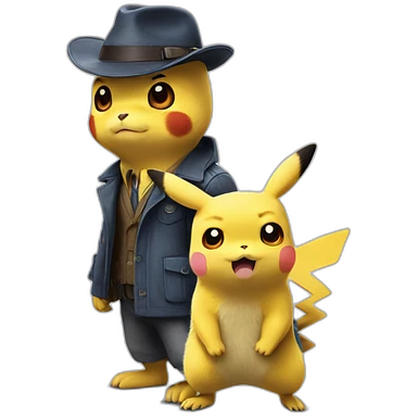 Detective pikachu with ash ketchum and the three kanto starter pokemon emoji
