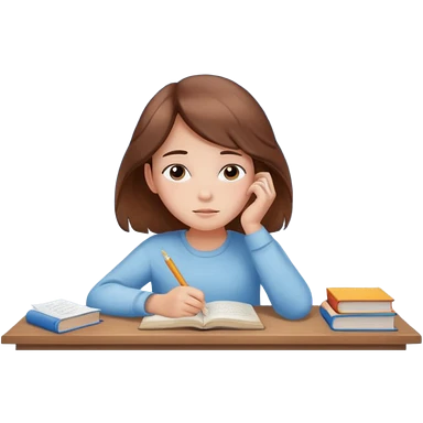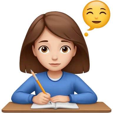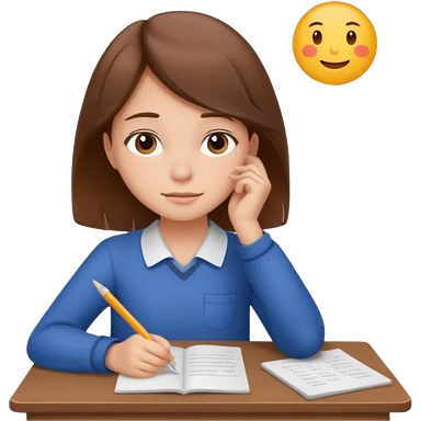 determined shy girl who is dreaming of 100% on her exam brown hair emoji