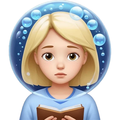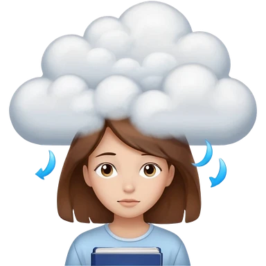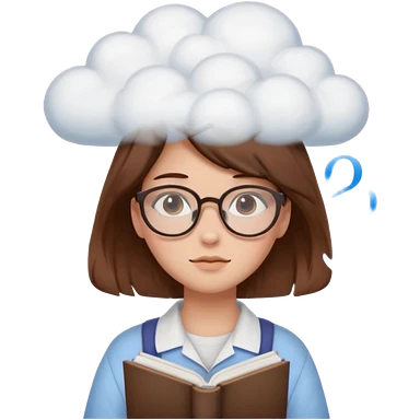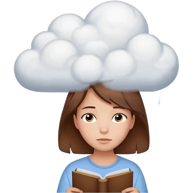 determined shy girl who is dreaming of 100%on her exam in a dream cloud brown hair emoji