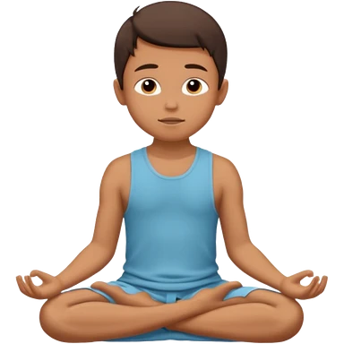 rapaz magro cabelo escuro, camiseta bege e bermuda bege escuro, corpo inteiro meditan emoji