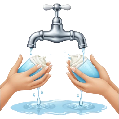 Deux mains sous un robinet avec des gouttes d'eau et du savon emoji | AI Emoji Generator