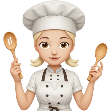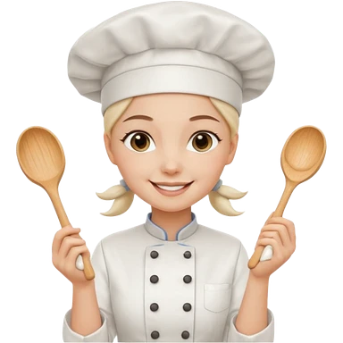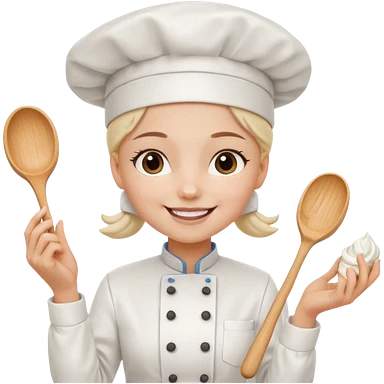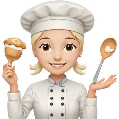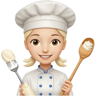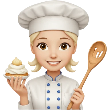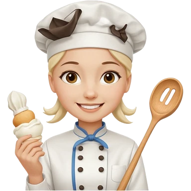 Young female baker - wearing a white chef's hat and holding a cream piping bag emoji