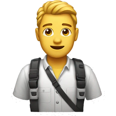 developer with a MacBook and AirPods with white shirt and short hair emoji