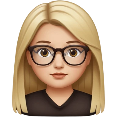 Chica blanca con cabello liso largo balayage (rubio con cafe), ojos cafe obcuro con lentes cuadrados, gordita emoji