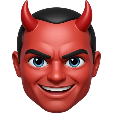Make a red devil looking straight to with is mouth like it's going to eat something that's dropping from the shy emoji