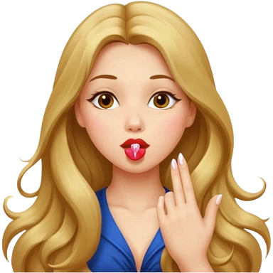 A girl with long brown hair blowing a kiss emoji