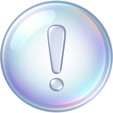 bubble exclamation mark, transparent, iridescent, soft glow, cute, minimal background emoji