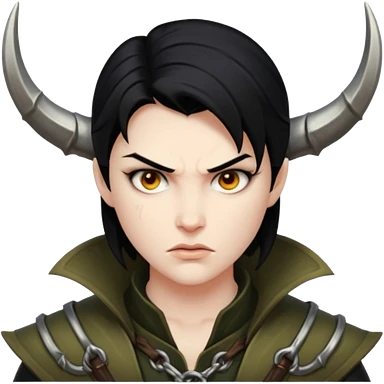 Vampire Hunter with long dark brown hair, black sequin baggy pants, shirtless with necklace emoji