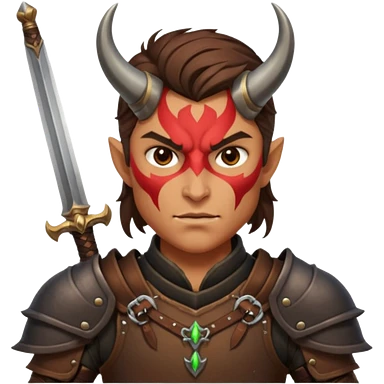 Vampire Hunter with long dark brown hair, dark brown sequin baggy pants, shirtless with necklace, dark brown sequin cape emoji