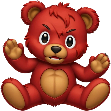 A red devil tearing up a brown teddy bear emoji