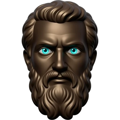 Dark bronze Greek philosopher statue head, intense gaze, eyes illuminated in bioluminescent cyan (#00D4B1). Dramatic lighting from below, transparent background, 3D render, emoji style." emoji