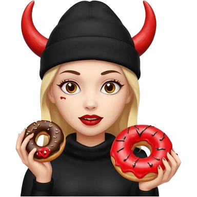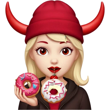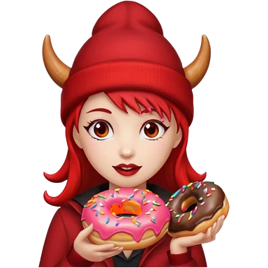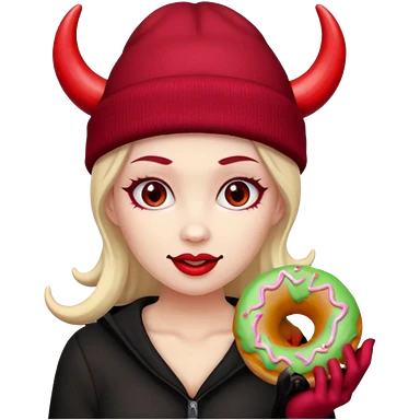 devil wearing beanies holding donut emoji | AI Emoji Generator