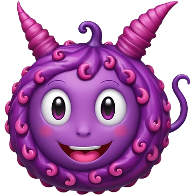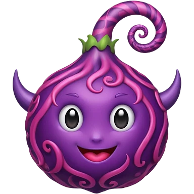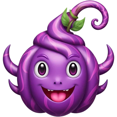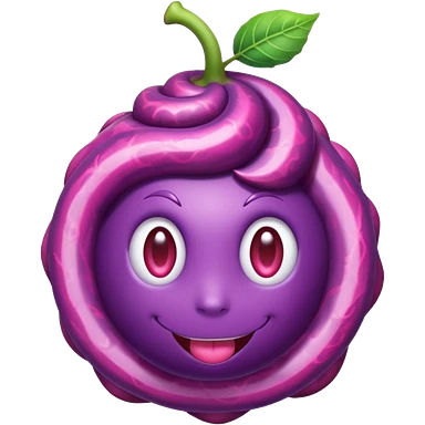 A cute anime-style purple devil fruit with pink spiral patterns, a curly swirl stem on top, glossy texture, simple shading, emoji style, centered on a plain background. emoji