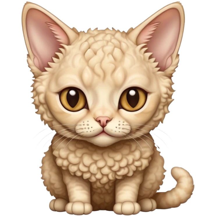 Beige curly fur Devon Rex Cat Full Body blue eyes emoji
