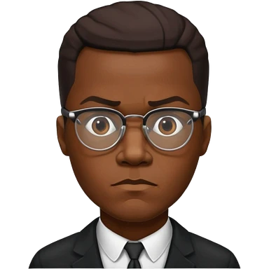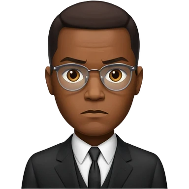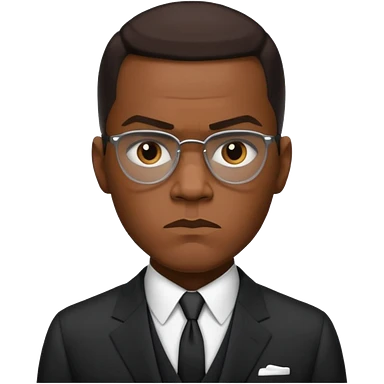 Malcolm x with small round face and suit and glasses and buzz cut and small black eyes and small gray beard and small black eyes and wrinkled forehead emoji