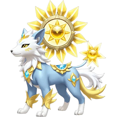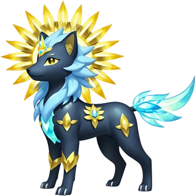Shiny sparkly gembond auroral boreal Solarpunk solar aesthetic shiny glowing divine lighting glimmering shimmering Amaura-Solgaleo-Luxray-Trico-fusion (full body) emoji
