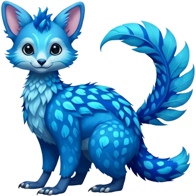Feral Rare Fantasy vibrant tropical cobalt-blue and cyan Vernid-Trico-species-creature by LiLaiRa, random markings, tufted tail, tufted ears, full body emoji