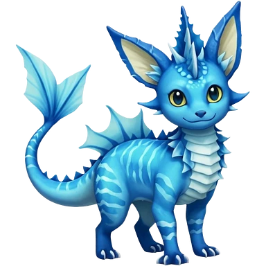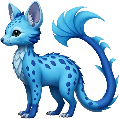 Feral Rare Fantasy vibrant tropical cobalt-blue and cyan Vernid-Trico-Vaporeon-Amaura-species-creature by LiLaiRa, random markings, tufted tail, tufted ears, full body emoji