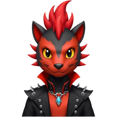 Shiny cool badass Fiery gothic evil black and red salandit-Liten-torracat with a red Mohawk emoji