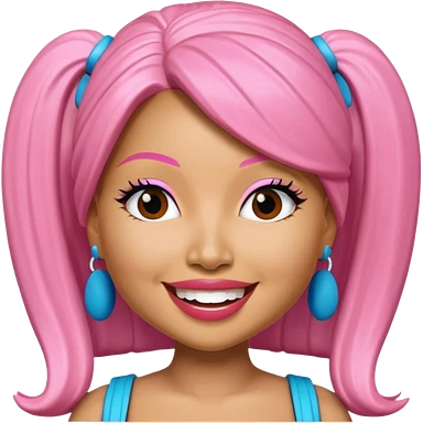 Una chica con piel muy clarita con pleo liso largo de color castaño y unos ojos marrones oscuro y labios grandes y nariz bonita y con unas pestañas que parezca asiatica que tenga las cejas un poquito mas juntas emoji