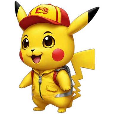 a delivery person with a yellow outfit with some red lines like the DHL logo. The delivery person carry somes carton boxes. emoji