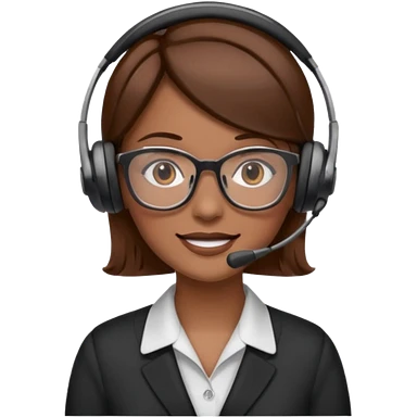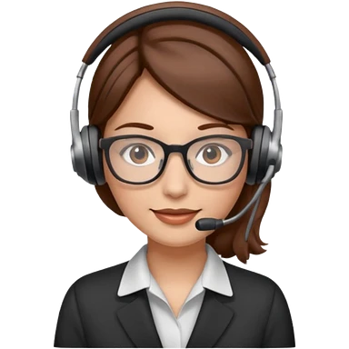 Frau, braune Haare, Brille, mit Headset für Kundenberatung emoji