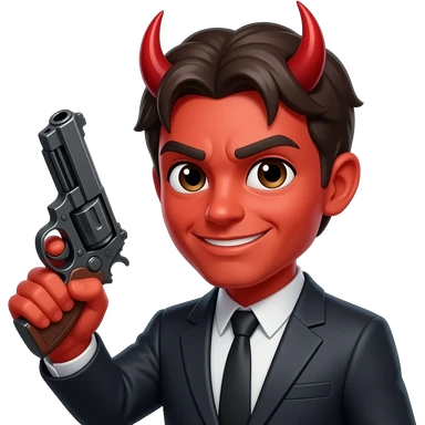 Emojis del diablo con una pistola apuntando hacia arriba emoji