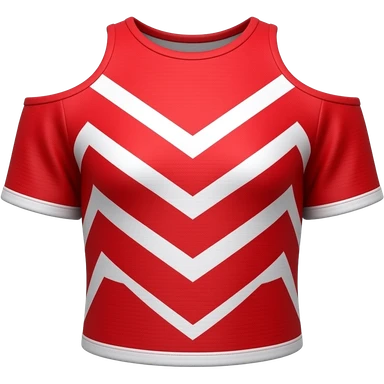 Isolated red off-shoulder collarless top, bright red color with white diagonal chevron stripes pattern, no collar, no straps, no sleeves, low-cut neckline exposing shoulders, white trim at the bottom, cute cartoon style, clean 3D render,, front view centered emoji