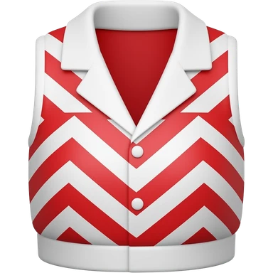 Isolated red off-shoulder sleeveless vest with white collar, bright red color, white diagonal chevron stripes pattern on the body, small white lapels, white trim at the bottom, cute cartoon style, clean 3D render, , front view centered, emoji