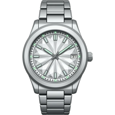 "Flat design emoji icon of a luxury silver Rolex Datejust watch, fully iced out with diamonds on the case and Jubilee bracelet, diamond pavé dial with black Roman numerals, isolated on a green circular background, clean vector style, high resolution." emoji