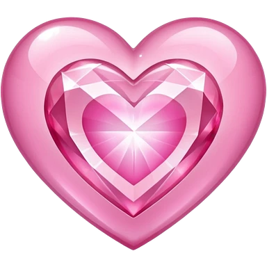 crystal clear diamond heart with one mini pink heart inside of it emoji