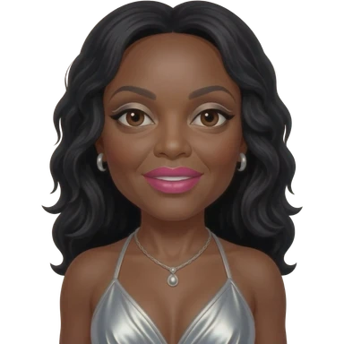 Diana Ross with brown eyes, long black hair, silver sequin outfit emoji