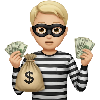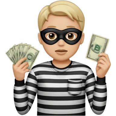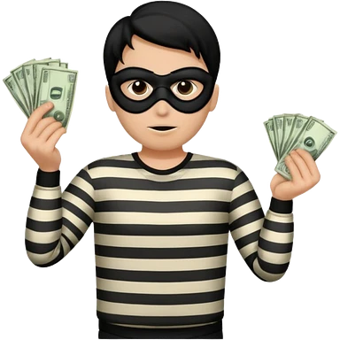 Shrugging shoulders emoji but wearing cliche robber outfit emoji