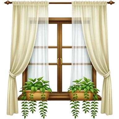 Window with hanging plants + curtain, Apartment Windows. emoji