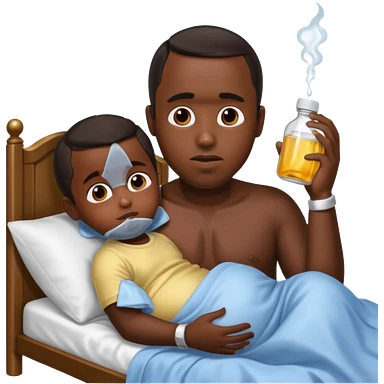 Diddy with baby oil and a kid in bed emoji