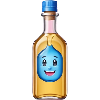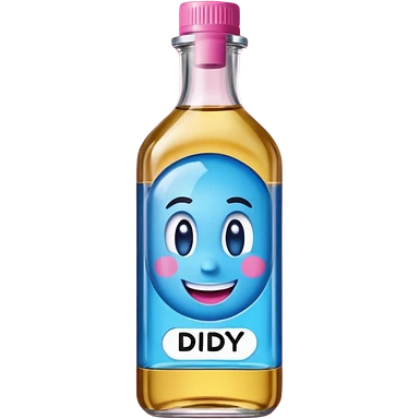 Smiling bottle of oil blue top pink outside with logo that says diddy oil emoji