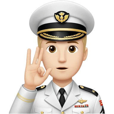 White military officer whit a small black point over his mouth is rasing his right hand to greet someone not in the picture emoji