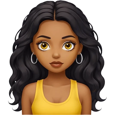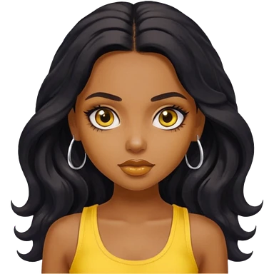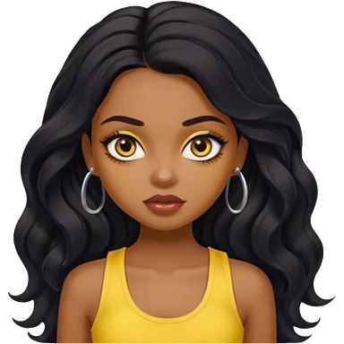 a pretty bratz dusky girl with long wavy black hair, kajal under eyes, yellow tank top emoji