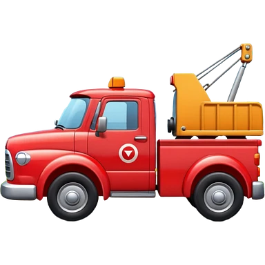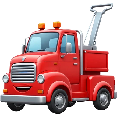 A 3D cartoon red tow truck pulling a small car, bright daylight, simple road background, Memoji-style realism. emoji
