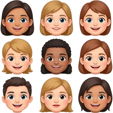 smiling face, cute face, luxury face & loving face, laughing face, beauty face, sunglass face generates 7 different emoji same look like arbic ladys emoji