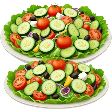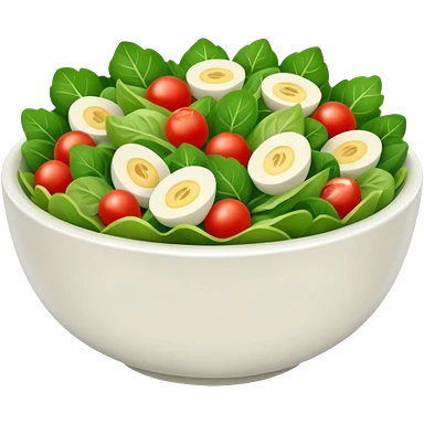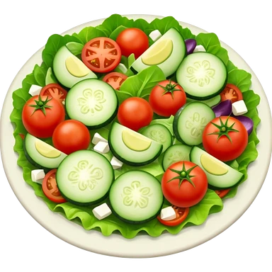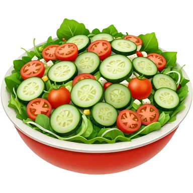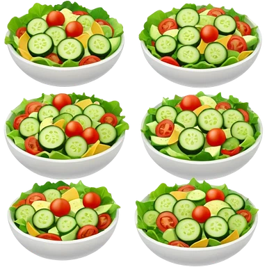 emoji of a composed salad with shrimp, avocado, cherry tomatoes, green salad leaves, and red onion, inspired by a photo, classic emoji style, bright colors, appetizing presentation emoji